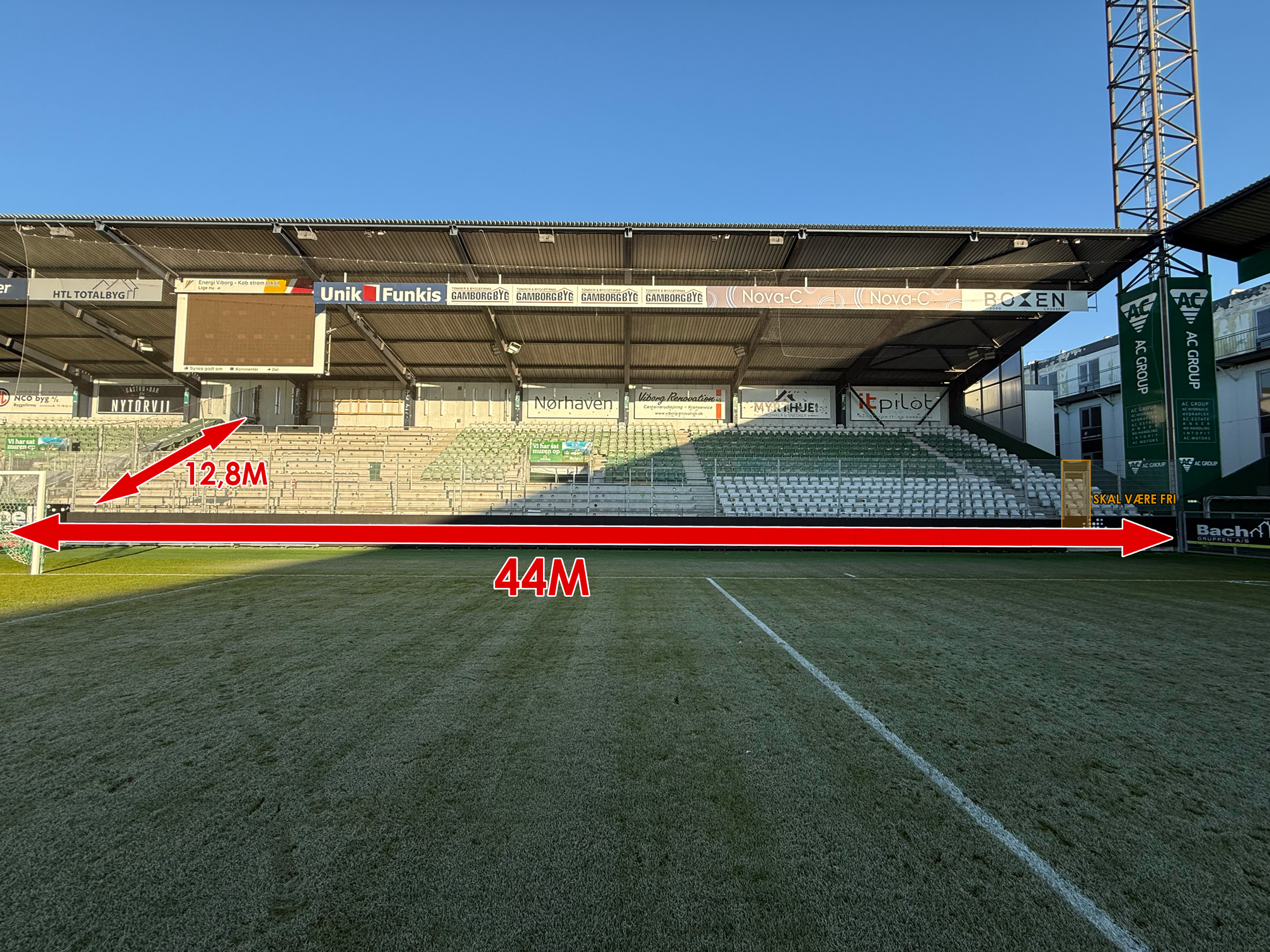 Hele udebaneafsnittet måler 12,8 meter x 44 meter: