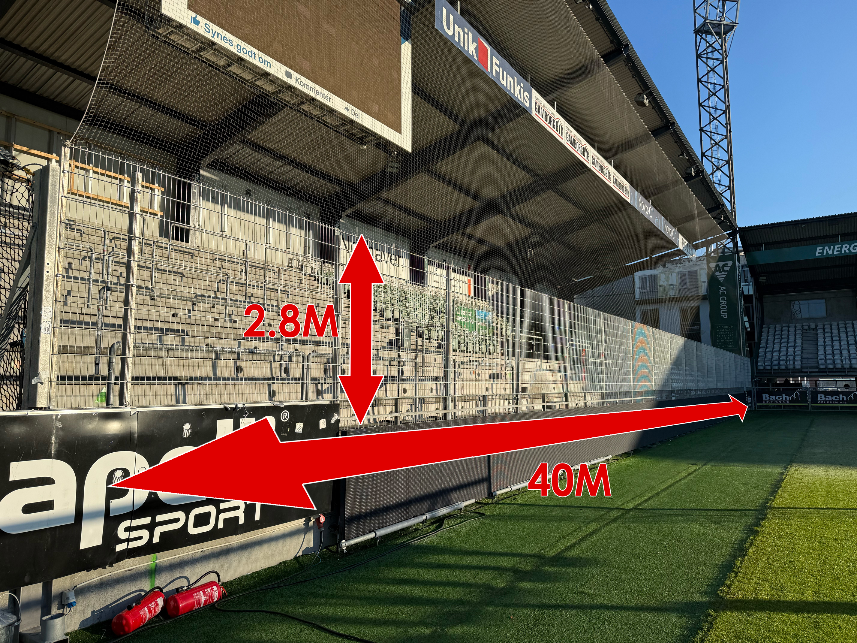 Der er mulighed for at hænge bannere på banehegnet foran afsnittet. Maksimalt 2.8 meter i højden og 40 meter i bredden.