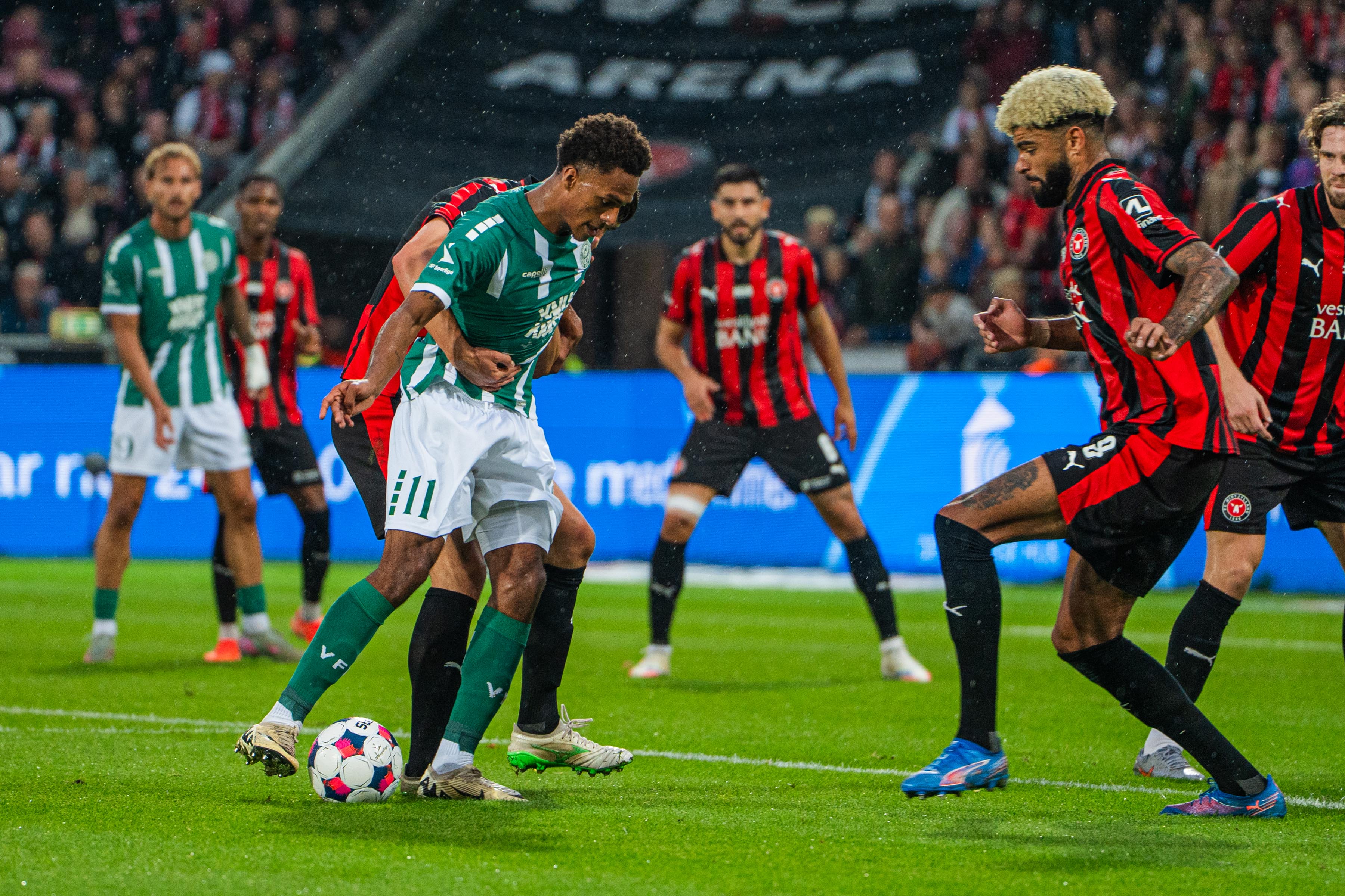 I det 77. minut slog FCM til. Et lang indkast endte for foden af Cho, der tvang Lucas Lund til at give en retur. Den var Philip Billing hurtigt over og prikkede Herning-klubben på 1-0. VFF´erne forsøgte at svare igen, men uden held. I det 96. minut lukkede Cho opgøret. Sydkoreaneren opfangede en returbold, sparkede den i mål og et derbynederlag på 2-0 var en realitet.
