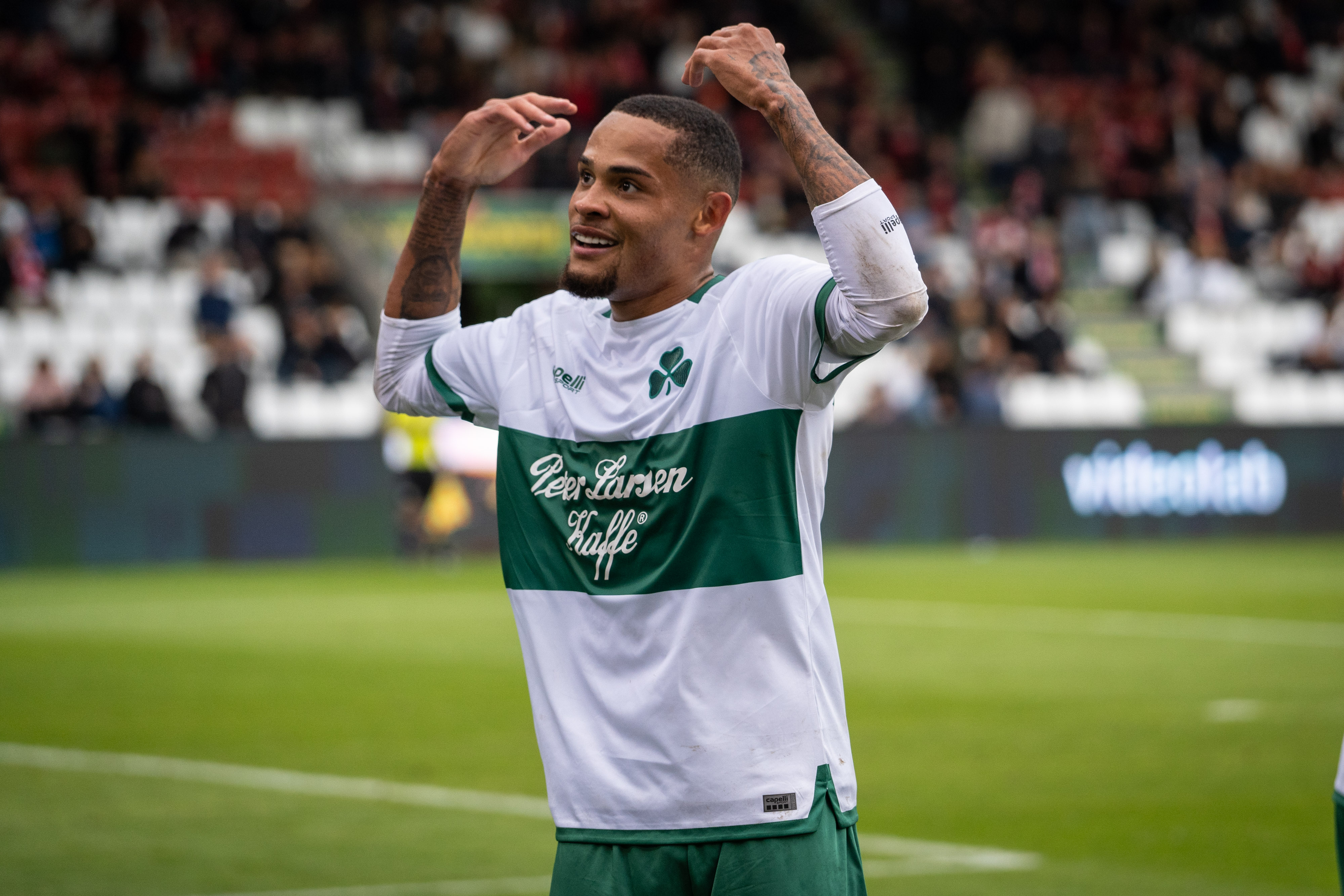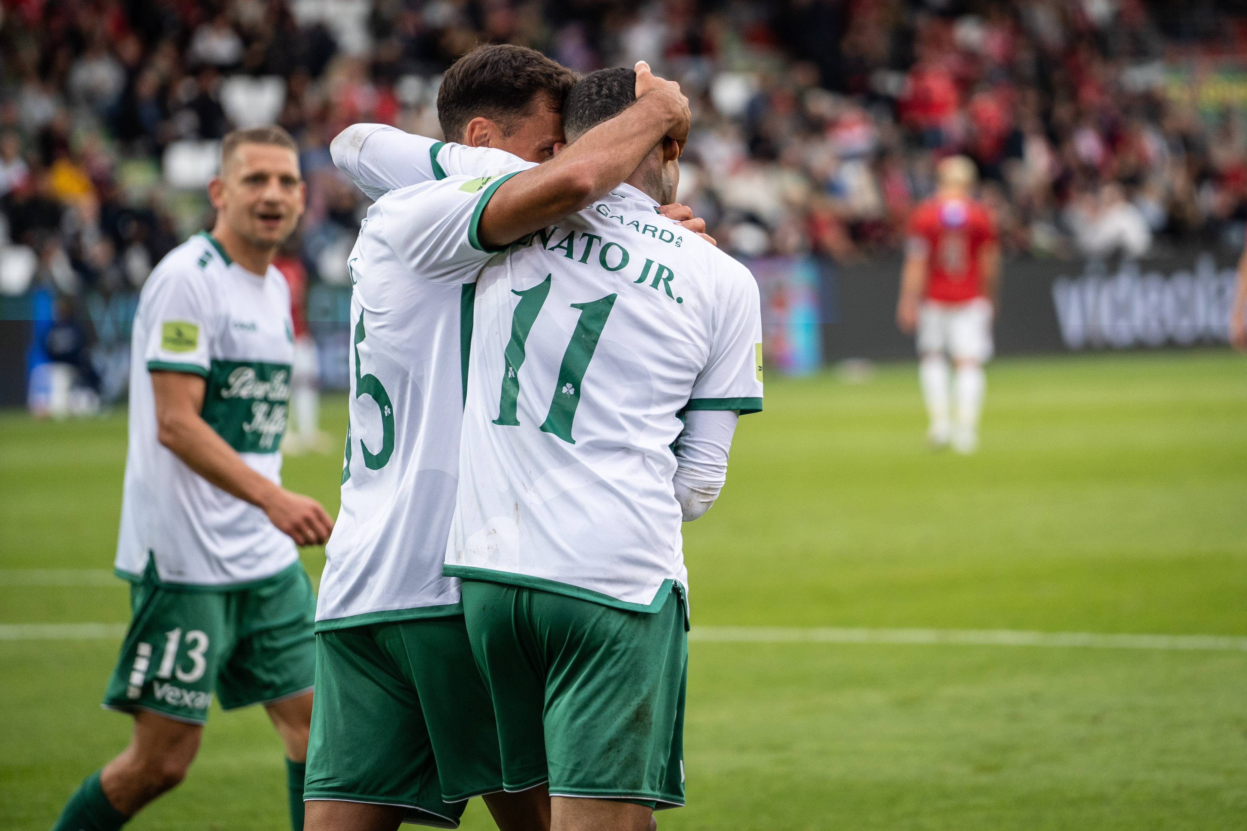 Bolden var knap givet op før det igen brændte på for hjemmeholdet. En Vejle-forsvarer tacklede bolden videre til netop indskiftede Ementa, og med største selvfølgelighed curlede den store angriber sit første sæsonmål i kassen.